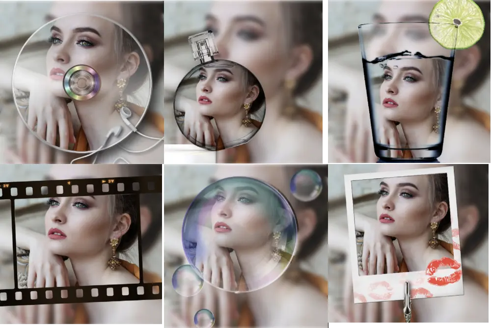 看效果从底层往上层,图片被分为3个部分,第一部分是底层的高斯模糊效果,第二层是原图被裁剪的部分,第三层是一个效果遮罩。