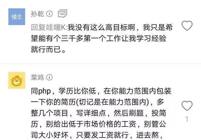 网友:想当年我第一份IT工作的工资要了2500,也是培训的,就为了工作经验。