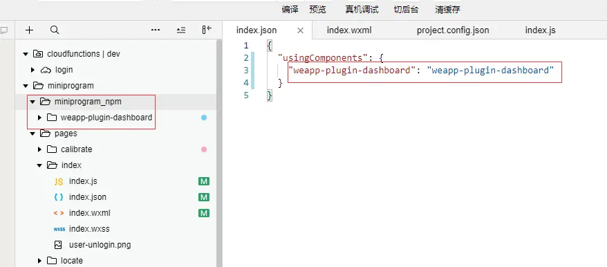 npm i weapp-plugin-dashboard -S --production // 此处以安装weapp-plugin-dashboard模块为例