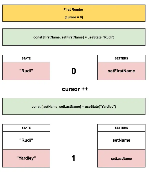 const [firstName, setFirstName] = useState("Rudi"); // cursor: 0