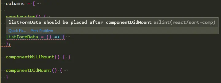 columns) →constructor→ 生命周期函数(componentWillMount/componentDidMount/... 最好按照生命周期顺序来写)→ 业务函数 -