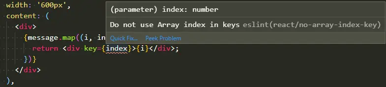 index的值作为key的值,应该使用id或其他唯一标识字段 原因:React 根据key来快速判断是否需要更新DOM结构,所以使用key属性可以提高性能,并且key的值必须是唯一不变的。index作为数组元素的序列号会跟根据数组的长度改变而改变的,所以不建议使用index的值作为key值。 -