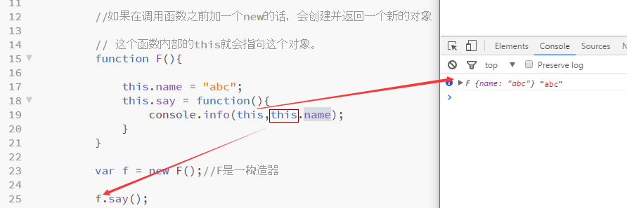 3,如果在调用函数之前加一个new的话,会创建并返回一个新的对象,而这个函数内部的this就会指向这个新对象。