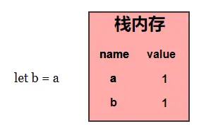 当我们定义a的时候,会在栈内存中开辟一个内存空间,如图所示: