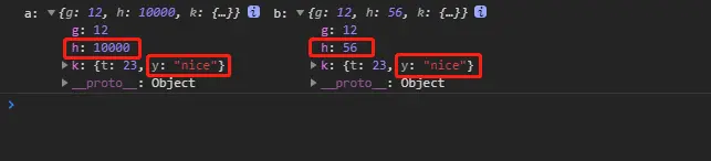 let a = { g: 12, h: 56, k: { t: 23, y: 70 } };