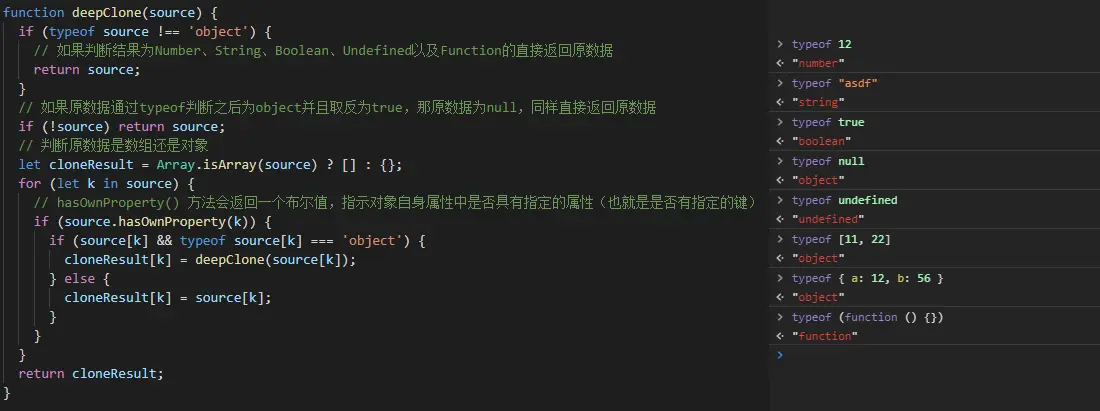 我们简单的聊一聊两种类型判断的方法(还有其他类型判断方法,这里就不做讲解,后续一定会出文章详细讲解的(•̀ᴗ•́)و ̑̑)目的是为了方便我们理解深拷贝。