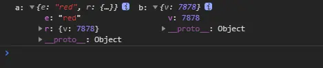 let b = a['r'] = {}其实等同于let b = (a['r'] = {}),那我们肯定就知道上面代码输出a和b分别是什么了,看结果: