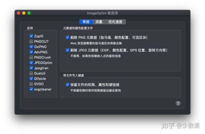 ImageOptim 是一个轻量小巧的图片压缩软件,专注于通过使用市面上完全免费的图片压缩工具包进行一系列、多层级的压缩工作,以达到最完美的图片压缩效果。ImageOptim 里面直接集成了包括 MozJPEG 、pngquant 、Pngcrush 等等在内的多种非常高效的图片压缩、文件压缩软件,通过将图片中的往往无用的「元数据」进行删除,以达到「无损的」图片压缩效果。