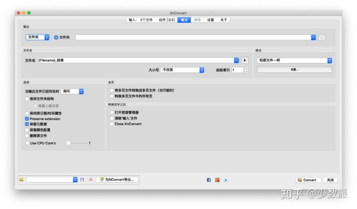 XnConvert 同样也支持对输出格式、路径以及文件名的批量定义,我们可以方便的将上一步通过 XnConvert 编辑的图片进行多种方式的输出。