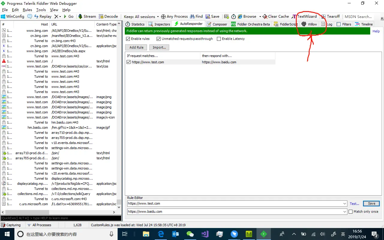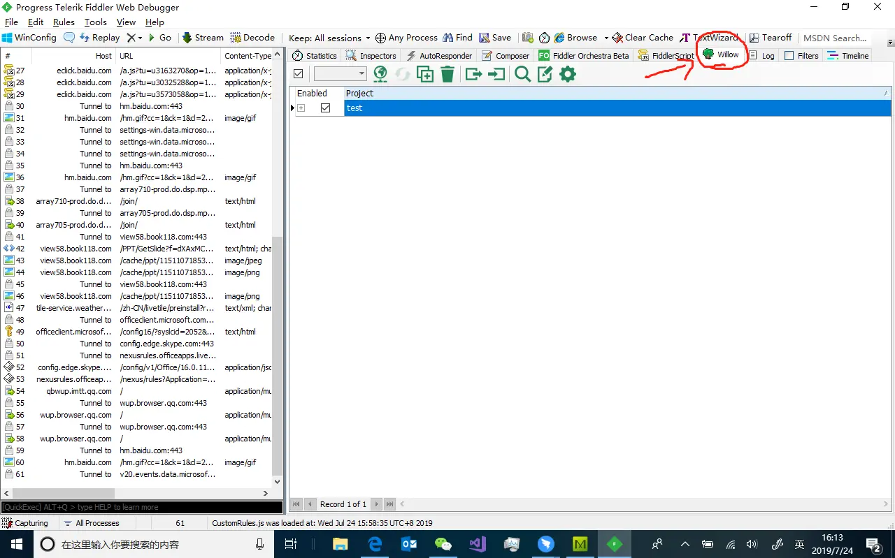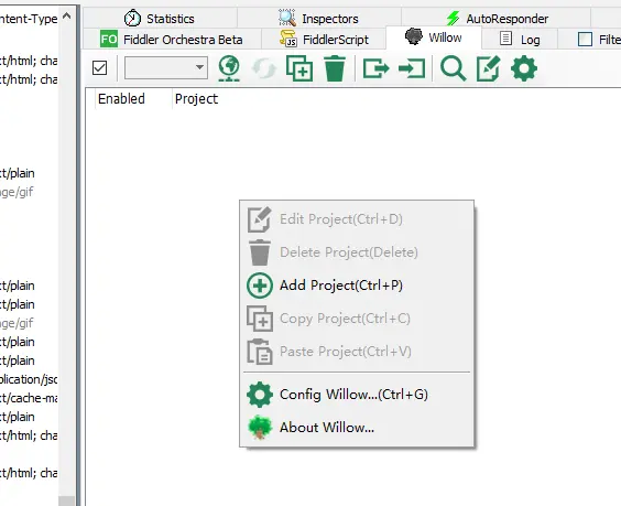 - 点击Fiddler中的willow图标