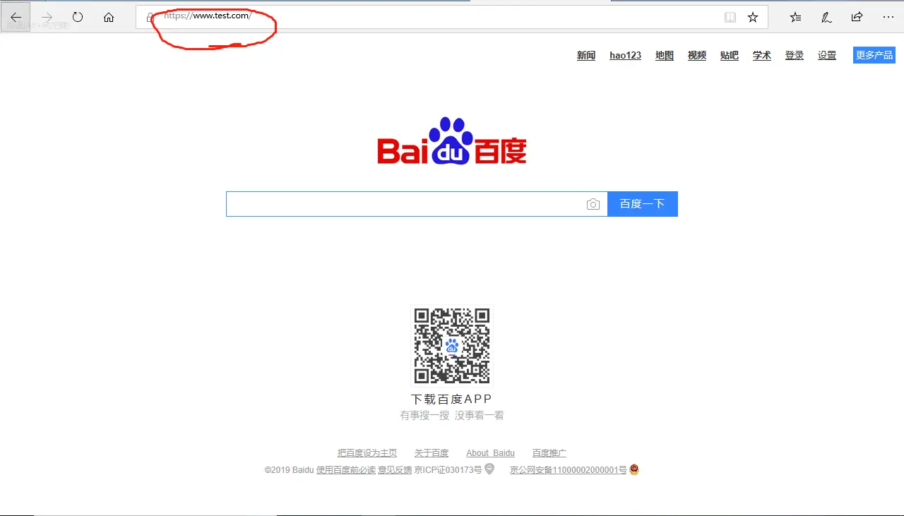 经过以上任意一种方法操作后,在浏览器中打开www.test.com,会发现,原本的网址: