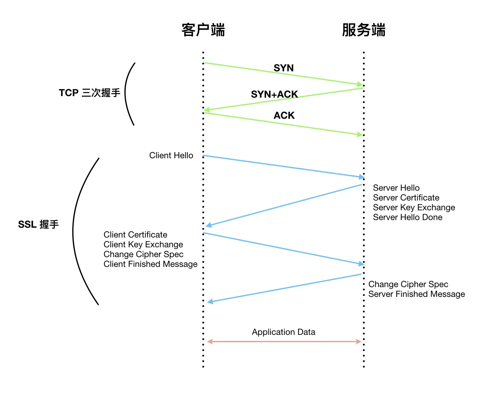 以下主要讨论不需要身份验证的客户端和需要身份验证的服务端之间的握手。