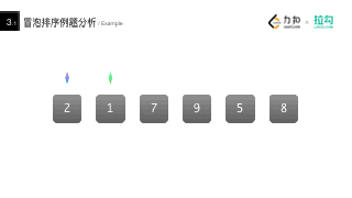 给定数组 [2, 1, 7, 9, 5, 8],要求按照从左到右、从小到大的顺序进行排序。