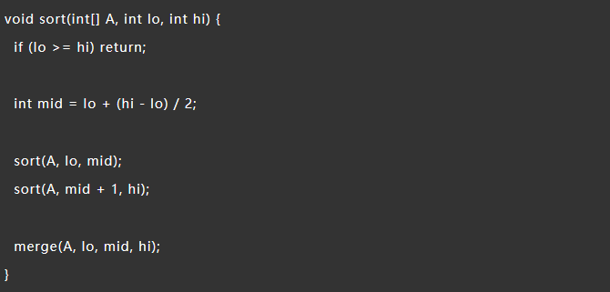 让我们看看如何写归并排序的代码,首先看看排序的主体函数: