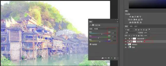 5、添加一个色相饱和度调整层,红色为:-34