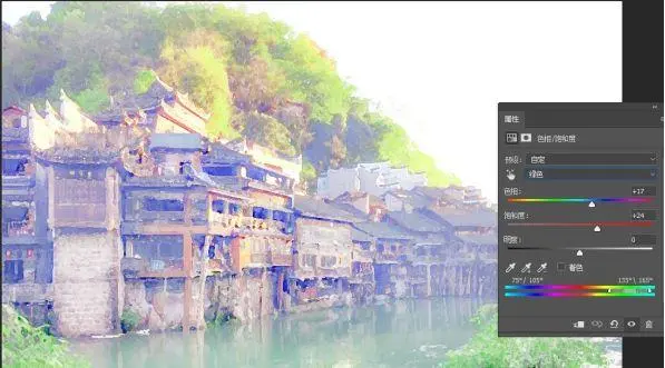 7、添加一个色相饱和度调整层,绿色为:17 24 0