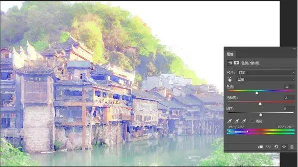 8、添加一个色相饱和度调整层,蓝色为:-12 -2 0