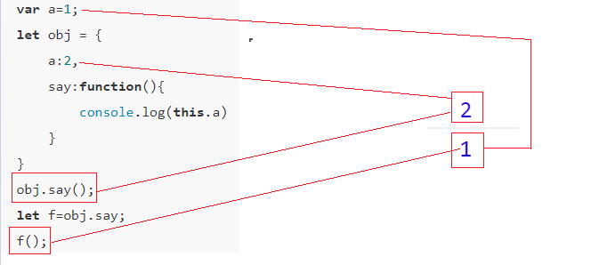 这个结果可以说明,当用obj.say()调用函数时,this是obj;