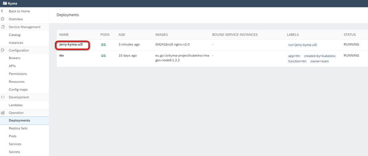 同时创建了一个命令行指定的名为jerry-kyma-ui5的deployment: