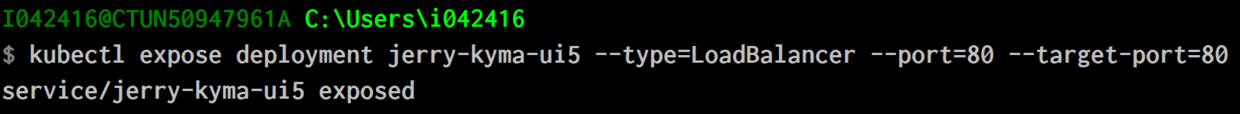 kubectl expose deployment jerry-kyma-ui5 --type=LoadBalancer --port=80 --target-port=80