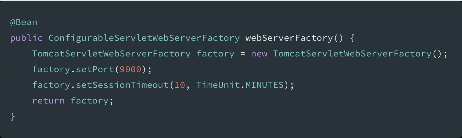 如果我们需要定义Spring Boot 内嵌的 Tomcat 容器时,就可以使用 TomcatServletWebServerFactory 来进行个性化定义,例如下方为官方文档提供自定示例: