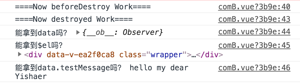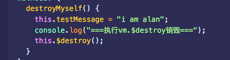 在destroyed钩子中使用this.tesMessage = 'XXX'试图改变View内容也已经是无效的了