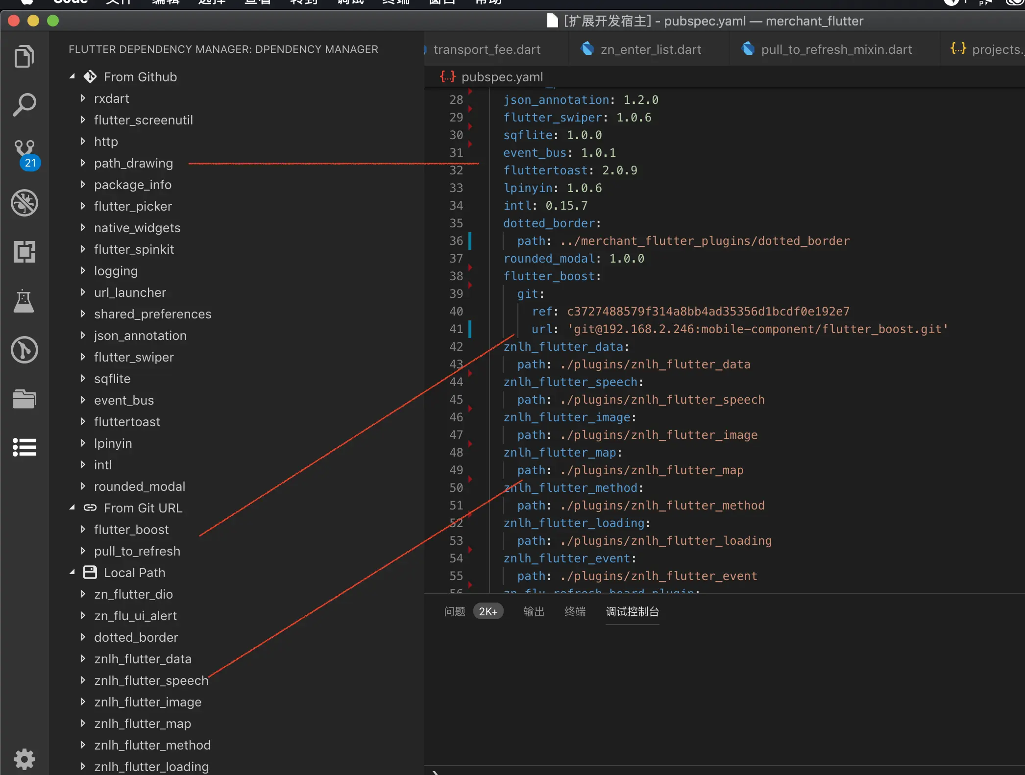 在flutter项目中,我们现在开发了一些自己的组件库,依赖库上传到公司的git,通过如下方式引用。