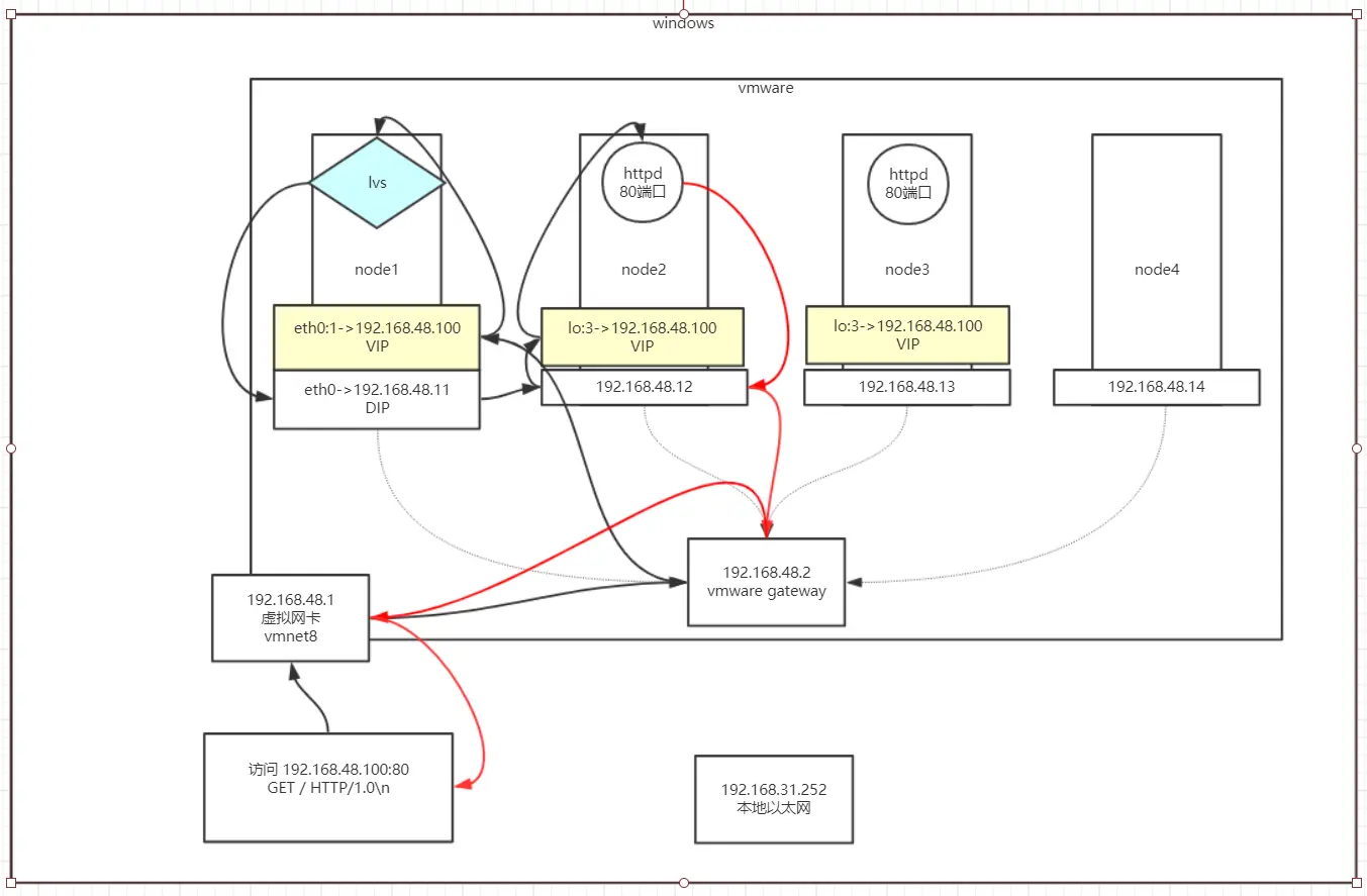 ipvs vmware出了提供了虚拟主机。还提供了虚拟网络- node1: