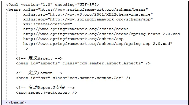 Spring中AOP代理由Spring的IOC容器负责生成,管理,它的依赖关系也有IOC容器负责。因此,AOP代理可以直接使用容器中的其他bean示例作为目标,这种关系可由IOC容器的依赖注入提供(不熟悉依赖注入的可以看看我之前的博文)。Spring创建代理规则为: