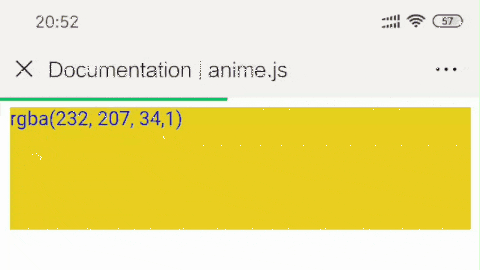 举例:从颜色#e8cf22 变化到 #48b532,应用上面所讲的过渡动画原理,#e8cf22对应的rgb格式为rgb(232, 207, 34),#48b532对应的rgb格式为rgb(72, 181, 50),那么分别对R、G、B各值按照对应的起始值和对应的终点值进行过渡(R:从232到72,G:从207到181,B:从34到50),过渡过程中再次组合对应的rgb值就是其过渡对应的颜色值,这就是颜色的过渡渐变原理,下面使用animejs这个库来实现,原理是一样的