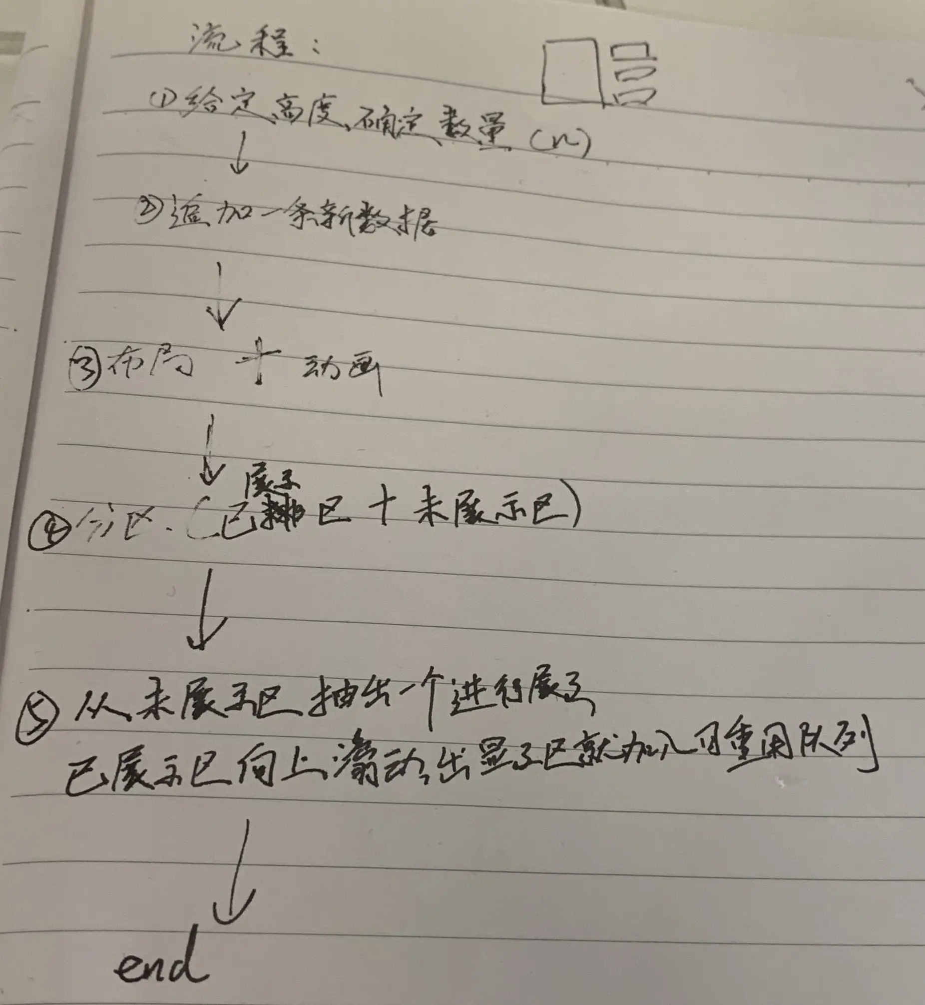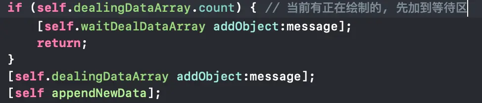 - 追加一条新数据(由于需要动画处理, 当前数据动画完成后才能处理下一条数据,这里需要定义两个区:正在处理区和等待处理区)