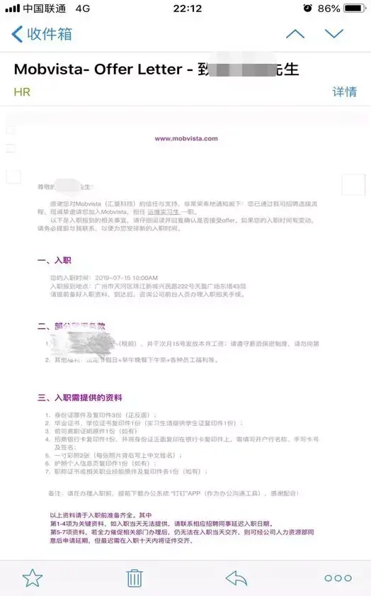 面试结束后,便回学校了。就在刚回到校门口时,就接到hr小姐姐的电话,通知我过了面试。问我什么时候能入职。什么都谈好之后都准备入职了。入职当天却因为实习时间双方没谈好就没去入职。(对方硬性规定说要实习到毕业。最终也就没去那边了)