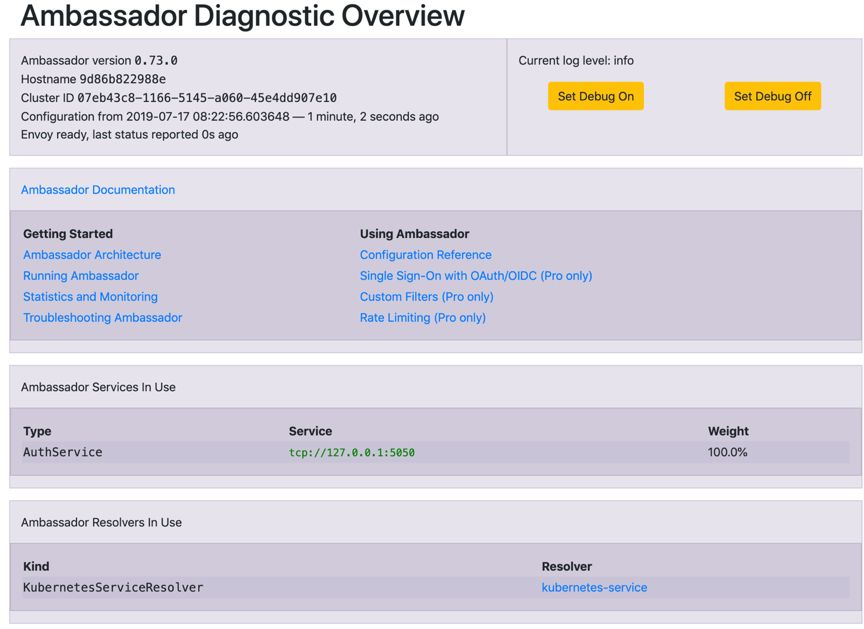 http://{ip}:8080/ambassador/v0/diag/初始化默认用户名admin,密码admin。能够正常的看到访问页面