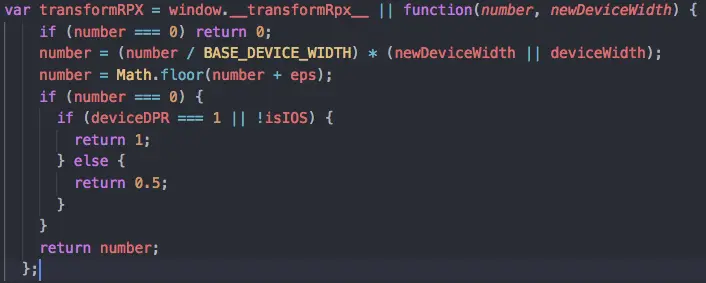 内联样式转换在底层基础库是采用transformRpx方法来转换rpx值的,思路与上面介绍的一样,唯一不同点就是是否对0进行修正,具体代码如下: