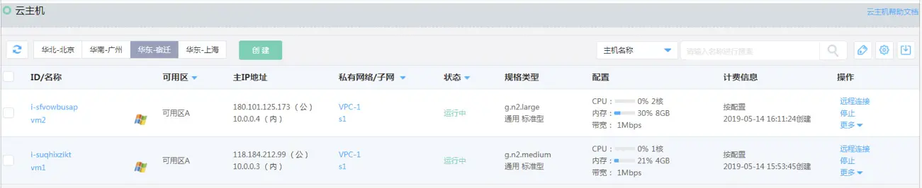 在此步骤仍可以选择实例对应的地域(华北-北京、华南-广州、华东-宿迁及华东-上海)及可用区,请注意“不同地域资源内网不互通,创建之后不可更改”,如果所选地域限额已满,可以通过提交工单提升限额。