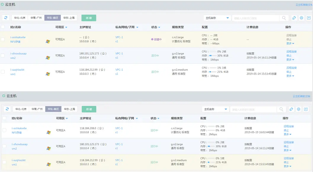 点击确认后,返回到控制台,显示创建中,待状态为运行,NFS服务主机创建完毕。