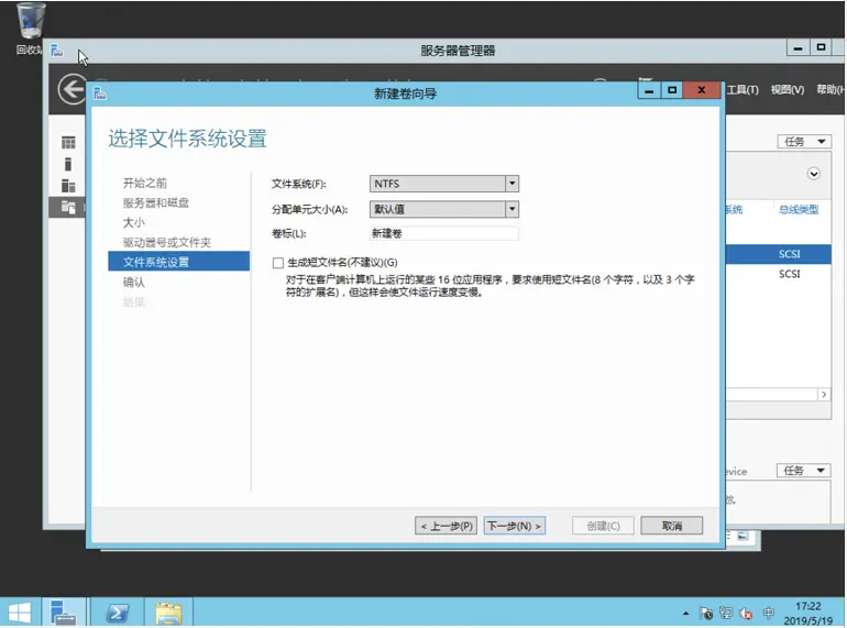 选择数据硬盘,右键选择新建卷,文件格式为NTSF