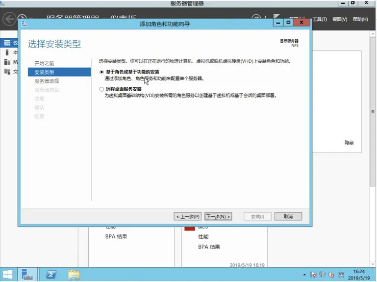 在“安装类型”对话框中,选择“基于角色或基于功能的安装”,然后单击“下一步”,如下图所示: