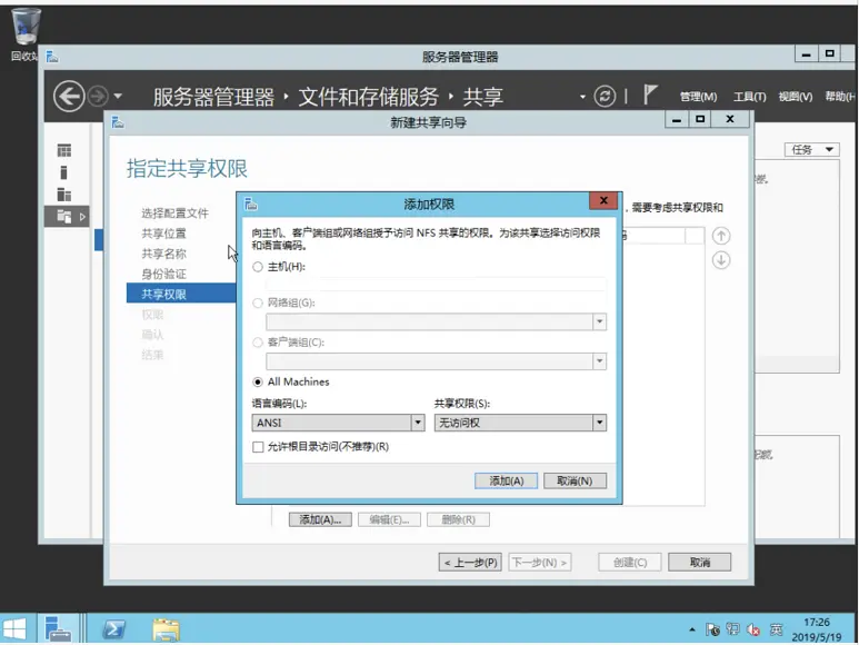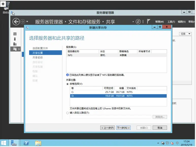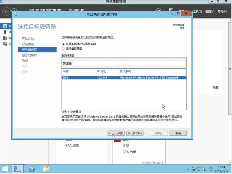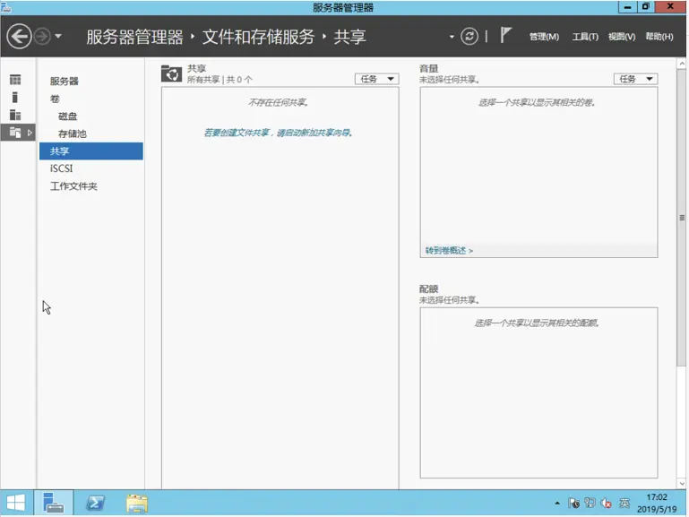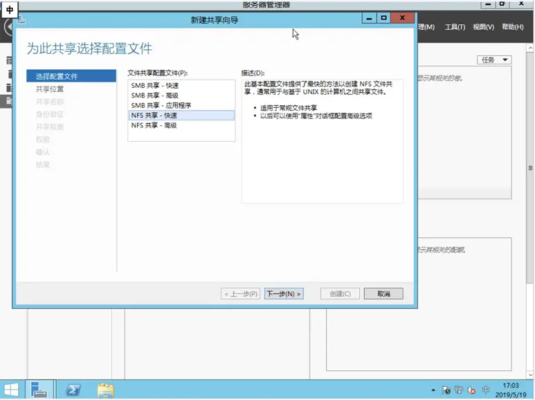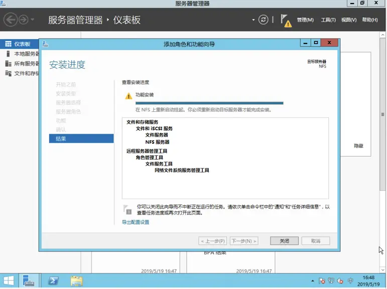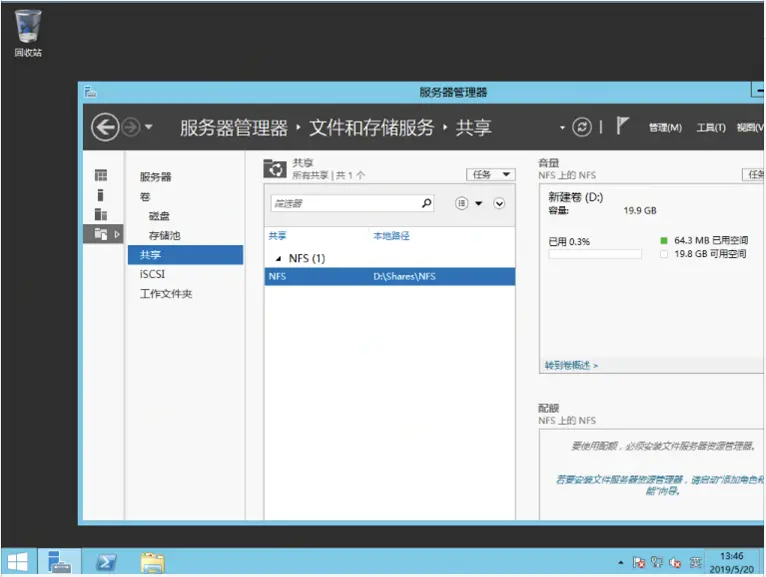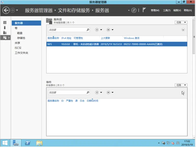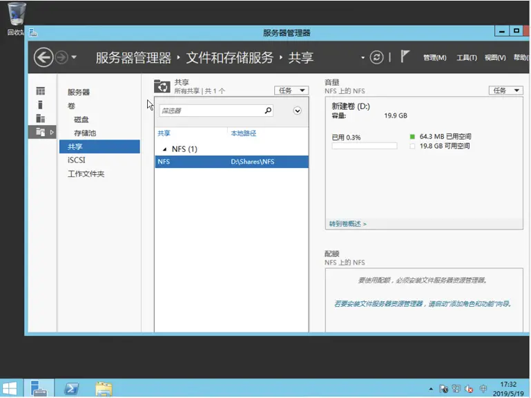 NFS服务端安装完毕,回到服务器管理器,选择文件和存储服务
