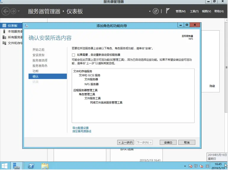 至此,Windows系统的NFS服务端安装完毕,根据提示重启服务器。