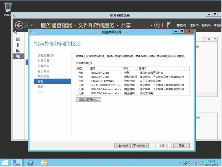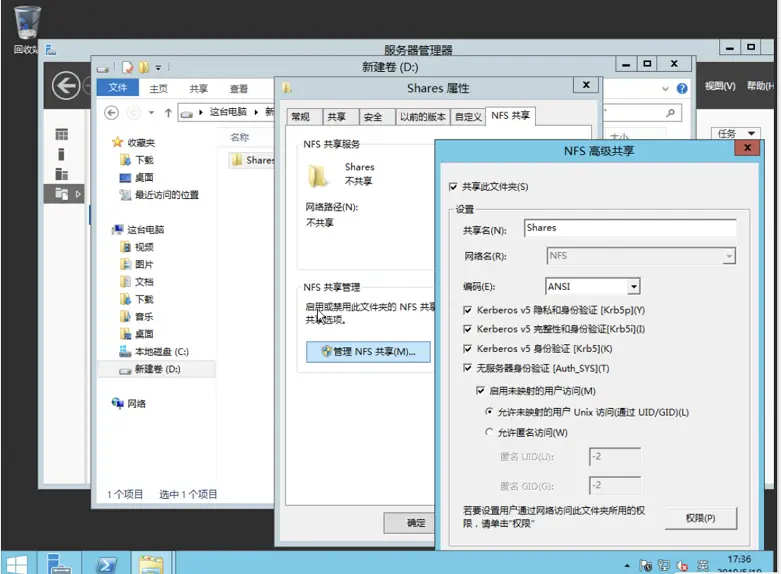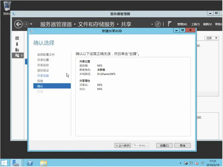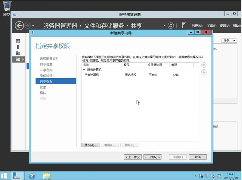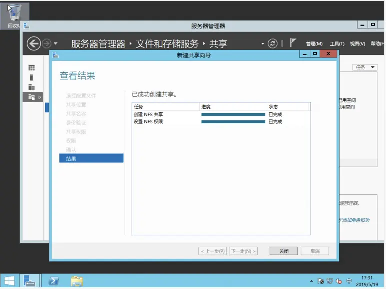 返回服务器管理器,共享对话框中,可以看到刚才新建的文件夹共享已经成功