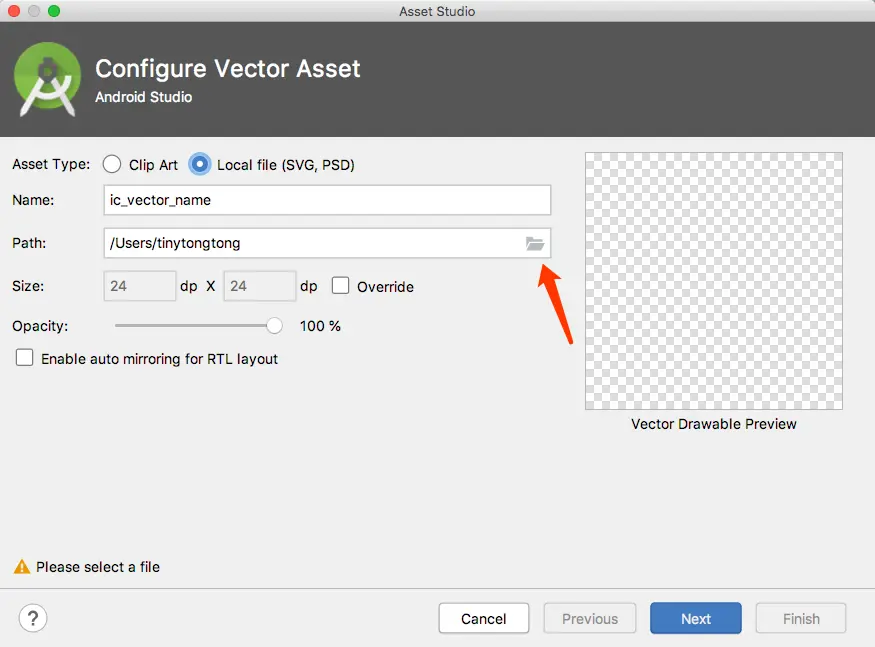 于是就直接将svg图片copy进res/drawable目录下,然后给ImageView的background属性引用,接下来就啪啪打脸了,xml文件直接标红,build之后也报aapt异常,这下就尴尬了。
