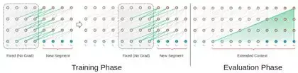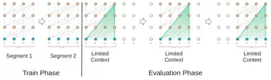 这种框架不会出现消失梯度的问题。但语境碎片限制了其习得长期依赖性。在评估阶段,该段仅会向右移动一个位置。新段必须完全从头开始处理。遗憾的是,这种评估方法计算量非常大。