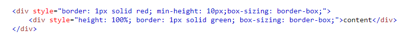 css min-height xiaofengqqcom123 2019-07-25 234 阅读1分钟 梳理几个常见关于height的问题 问题:问子元素高度? 10px?? no no no, 答案是屏幕高度,关于min-height 问div1的高度 答案: 怎么让div1的高度等于div2的高度呢? 方式1:div1为div2的背景(场景:例如div1为图片) 背景:子元素宽度不确定,父元素宽度最少为 屏幕宽度 实现:父元素宽度为屏幕宽度(100%),子元素设置overflow:scroll; 过程: