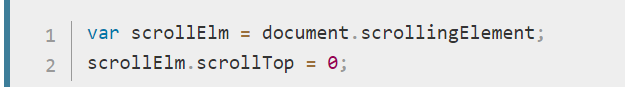 于是当我们希望页面滚动定位到具体位置的时候,如400像素,直接一行代码就可以搞定了: document.scrollingElement.scrollTop = 400
