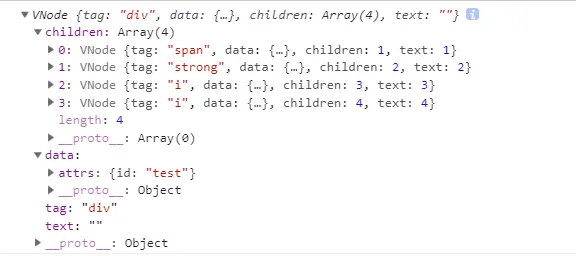 Vnode这个类在之前章节已经分析过源码,本质上是用一个对象去描述一个真实的DOM元素,简易版关注点在于元素的tag标签,元素的属性集合data,元素的子节点children,text为元素的文本节点,简单的描述类如下: