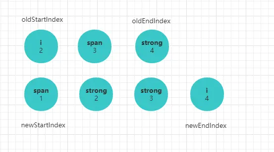 oldStartIndex,截至位置为oldEndIndex,新节点的起始位置为newStartIndex,截至位置为newEndIndex。 - 新旧