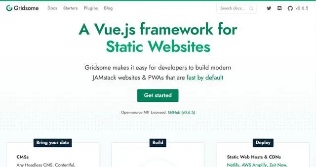 - Gridsome使用超快速静态站点生成器,JavaScript和API的强大功能来创建令人惊叹的动态Web体验。