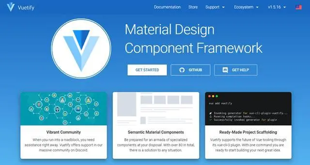 Vuetify目前是基于vue的最好的UI组件库之一。它提供了大量基于Material Design规范精心制作的组件(80+),足以满足任何应用程序的需求。