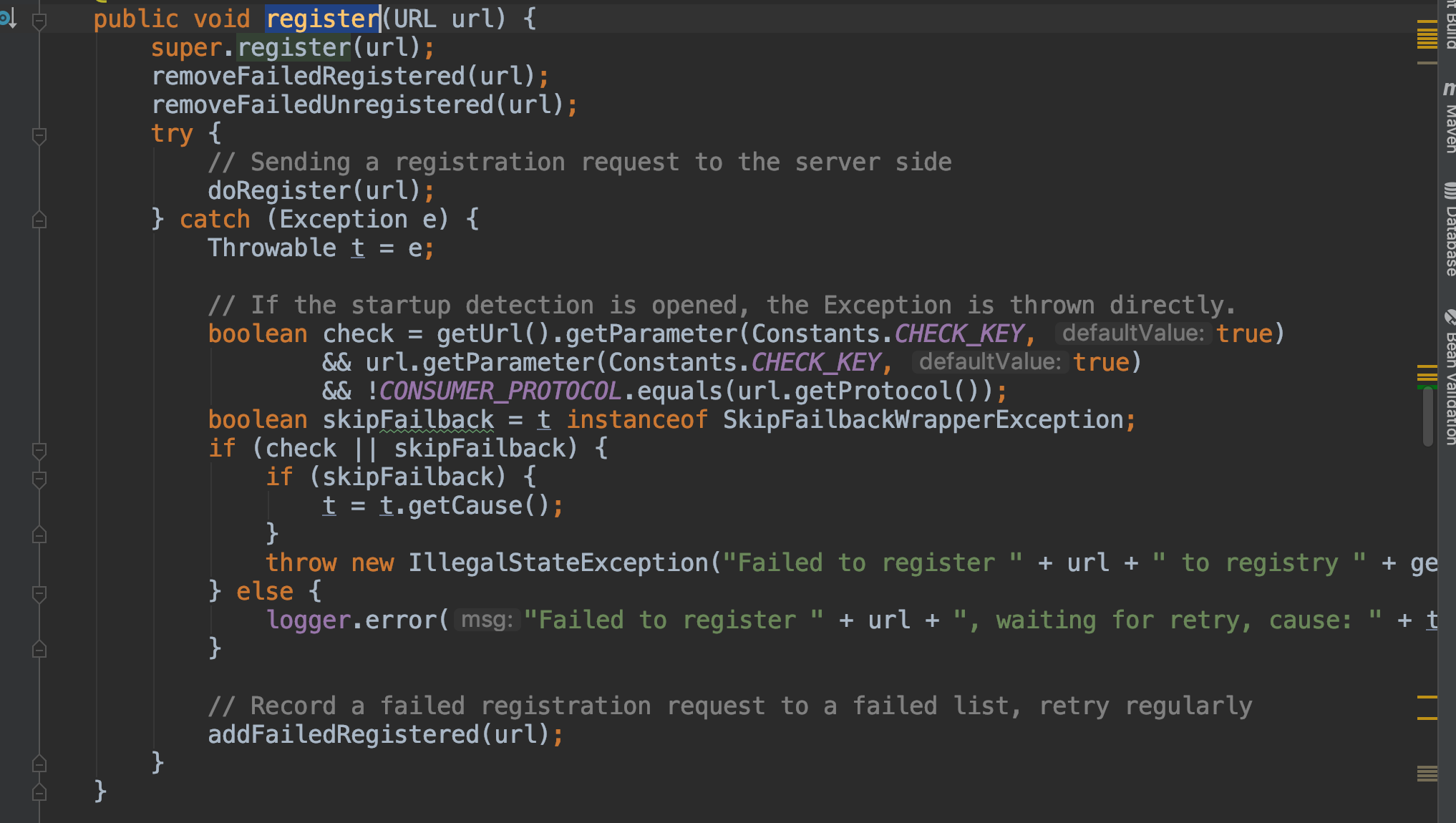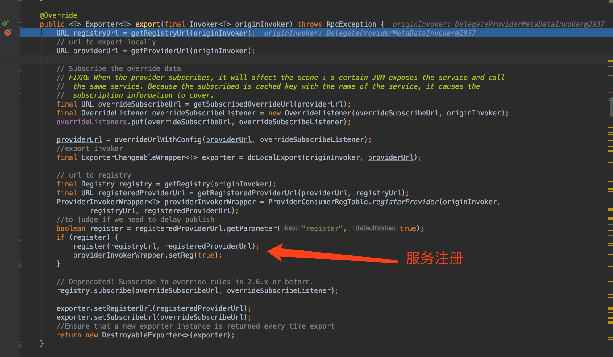 这是RegistryProtocol的export方法的逻辑, 主要是调用register方法进行服务注册